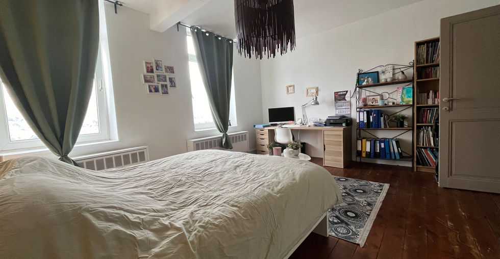 2eme étage: hall de nuit, 2 chambres (+/- 14 et 9m²), salle de bain (baignoire, wc et lavabo).